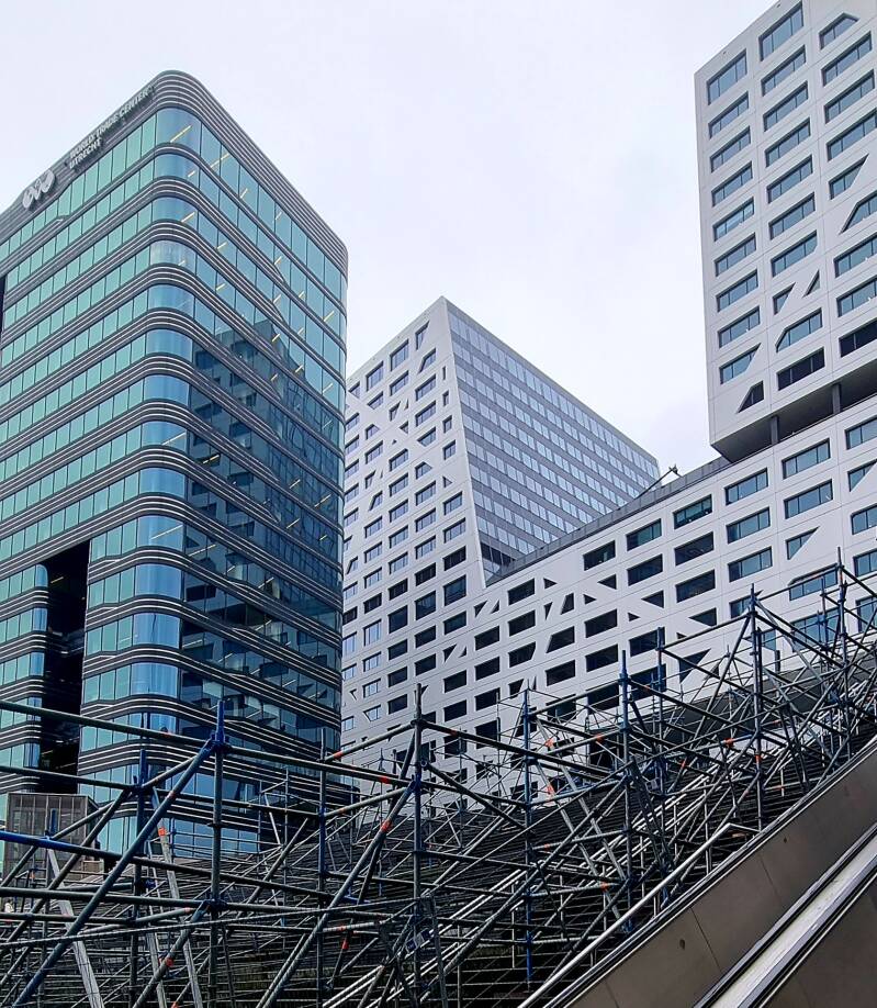 Boven: uitzicht op centraal station links en eye rechts in Amsterdam