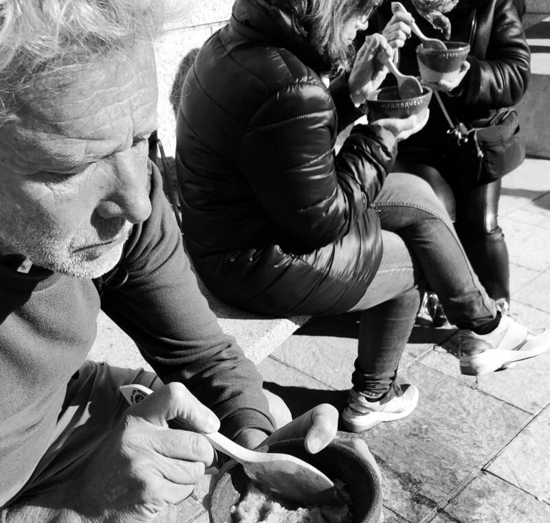 Soep met brood erin werd door veel gegeten om 10.00 in ochtend.